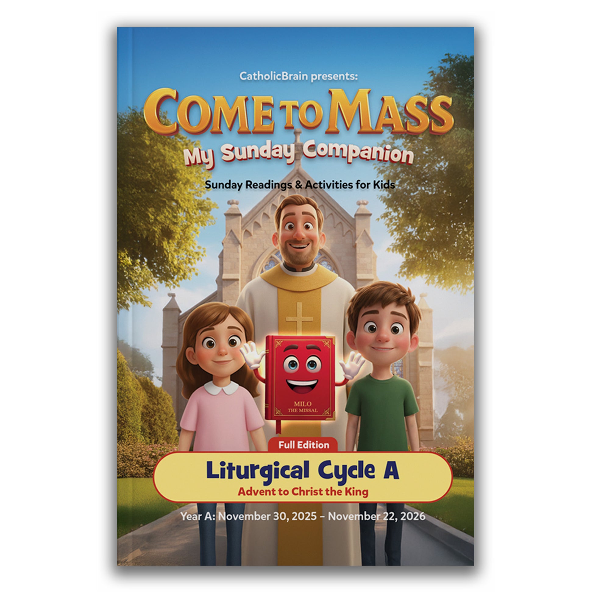 The Come to Mass – My Sunday Companion is a beautiful, year-long Catholic activity book that helps children understand and participate in the Sunday Gospel readings. Designed for Liturgical Cycle A, this complete box set makes it easy for families, parishes, and Catholic schools to grow in faith together week after week.