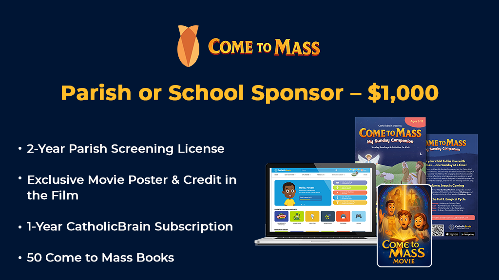 Enjoy 1-year parish screening rights, an exclusive movie poster, and special thanks credit in the film, plus full CatholicBrain access and Come to Mass materials. Inspire your parish to fall in love with the Mass again.